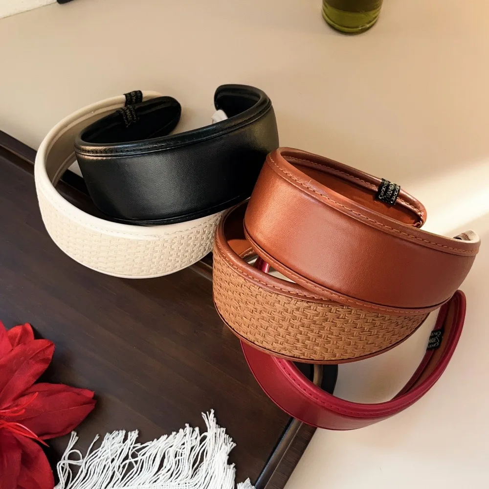 New 2025 Retro PU Leather Hairbands Wide Turbans Non-slip Hoop Headband Elegant Hair Accessories Women Girls Fashion Items Gifts